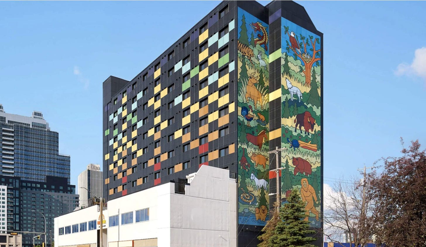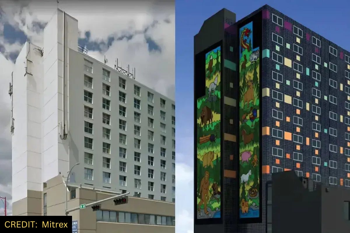 A solarpunk retrofitted building is so epic it has ended up in the Guinness Book of World Records. That’s because it’s got the world’s largest solar mural on its side. The artwork covering the Sunrise Building in Edmonton, Canada, incorporates solar panels providing clean energy and saving money for the residents.